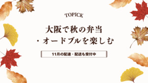 大阪でも会議や行楽、地域イベントなどで仕出し弁当のご注文が増えています。旬のきのこなど、彩り豊かな野菜を使ったお弁当は、この時期ならではの味わい。当店では、季節感あふれるメニューを取り揃え、心温まるおもてなしをお届けしています。