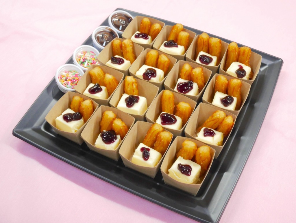 ひと口サイズのチュロスとチーズケーキを組み合わせた、食後にぴったりのデザートセットです。